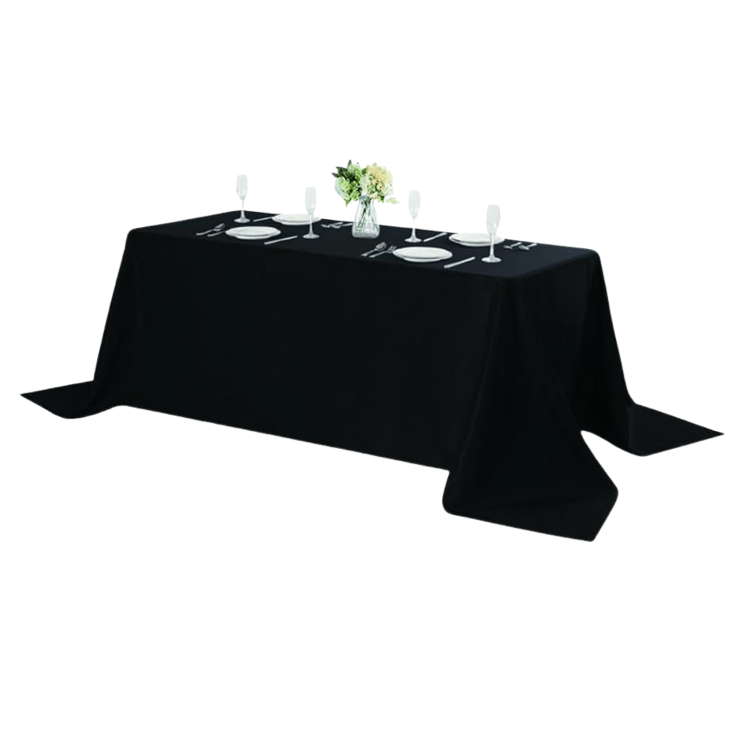 Add a nice finishing touch to your event with our black table linen. Designed to fit our 6ft rectangular tables, this 90" x 132" linen drapes to the ground for an elegant look.